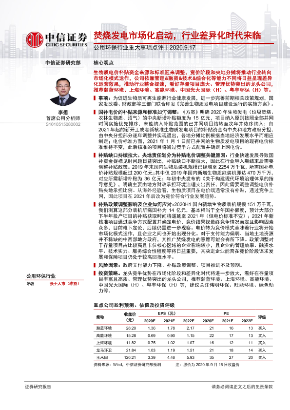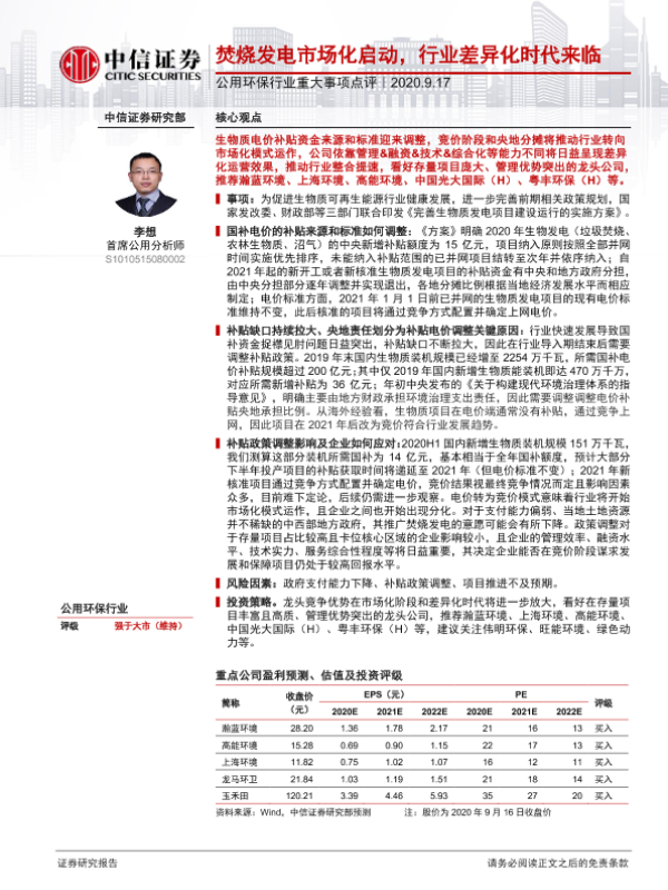 【中信证券】【20200917】公用环保行业重大事项点评:焚烧发电市场化启动,行业差异化时代来临-4页