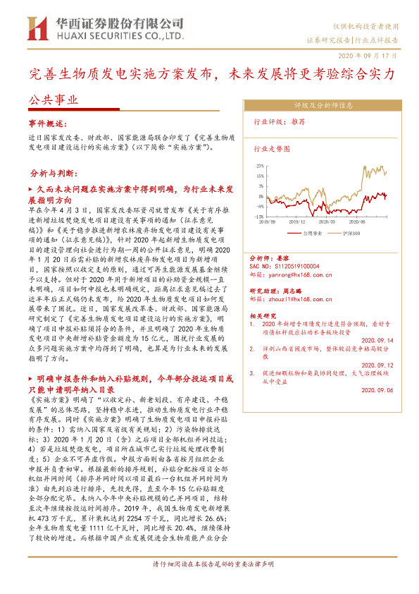 【华西证券】【20200917】完善生物质发电实施方案发布,未来发展将更考验综合实力-5页