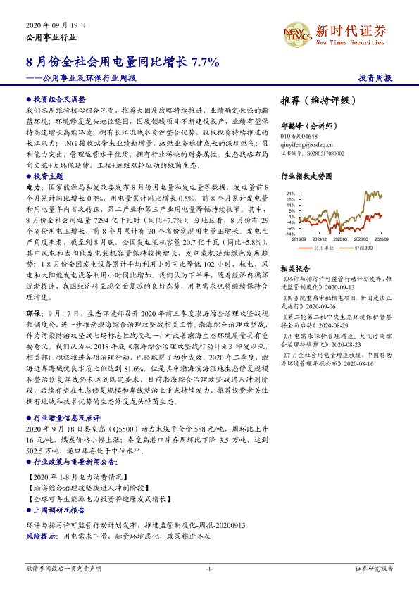 【新时代证券】【20200919】8月份全社会用电量同比增长7.7%-18页