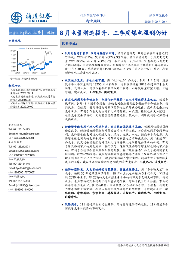 【海通证券】【20200920】8月电量增速提升,三季度煤电盈利仍好-2页