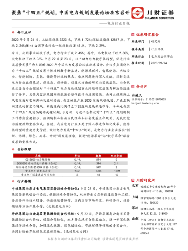 【川财证券】【20200924】电力行业日报:聚焦“十四五”规划,中国电力规划发展论坛在京召开-3页