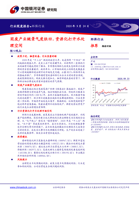 【银河证券】【20200924】环保行业:固废产业链景气度依旧,资源化打开水处理空间-26页