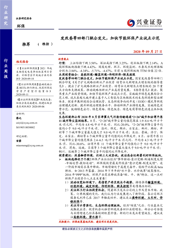 【兴业证券】【20200927】发改委等四部门联合发文,加快节能环保产业试点示范-7页