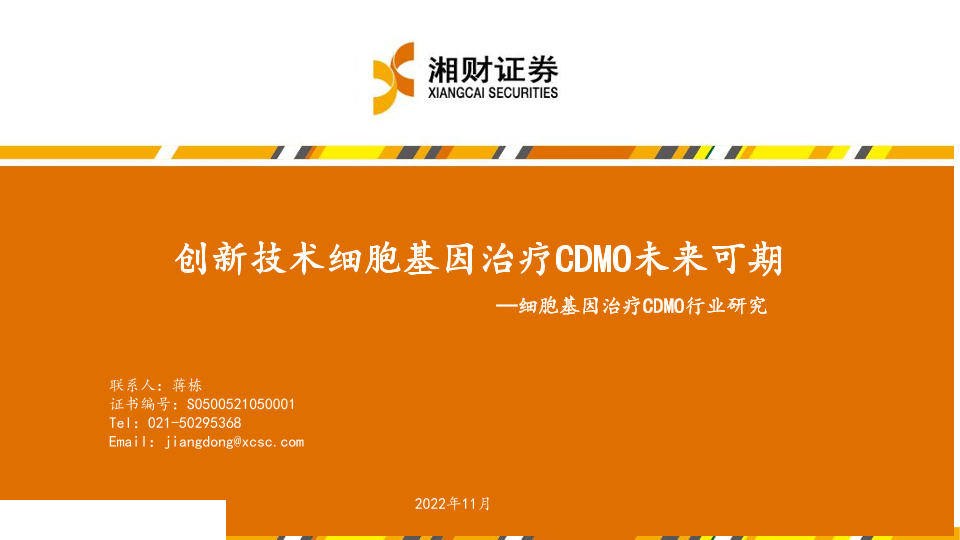 【湘财证券】【202211】细胞基因治疗CDMO行业研究:创新技术细胞基因治疗CDMO未来可期-38页