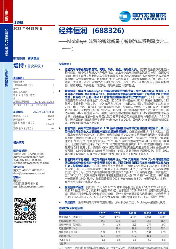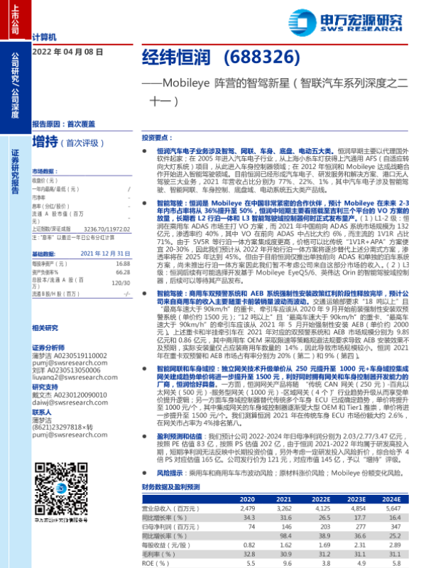 【申万宏源】【20220408】经纬恒润-688326-Mobileye阵营的智驾新星(智联汽车系列深度之二十一)-39页