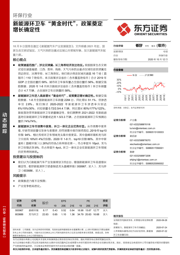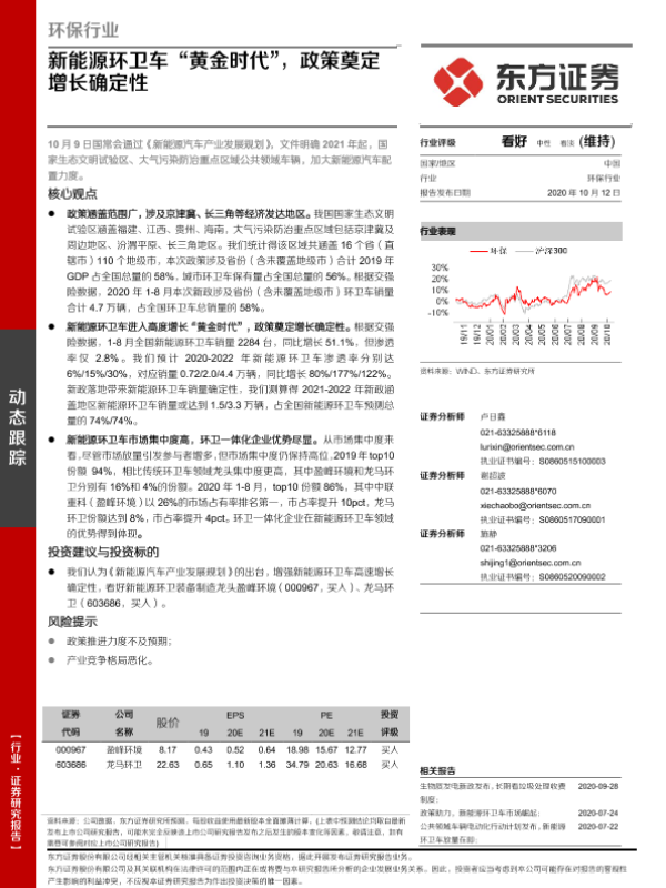 【东方证券】【20201012】环保行业:新能源环卫车“黄金时代”,政策奠定增长确定性-7页