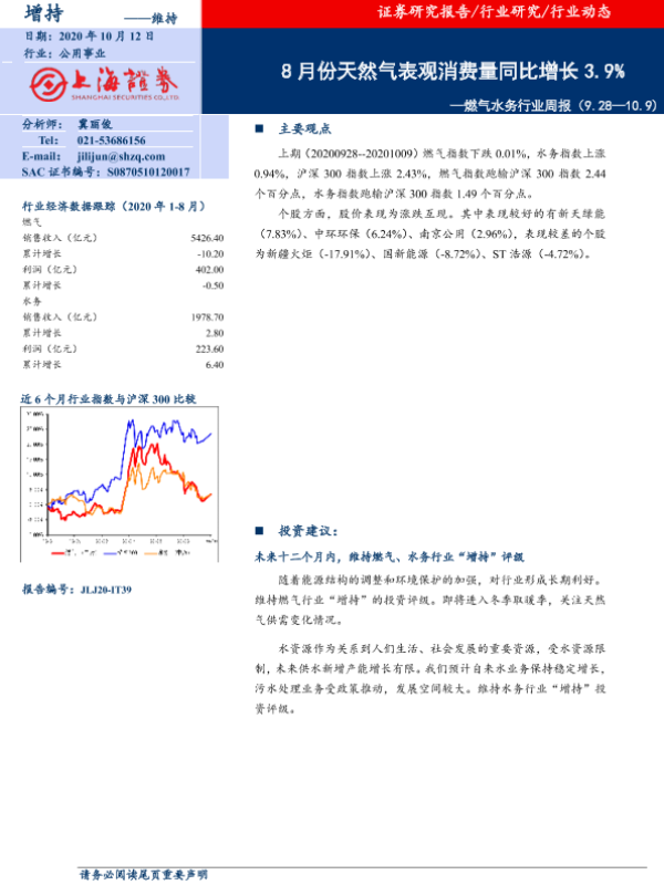 【上海证券】【20201012】8月份天然气表观消费量同比增长3.9%-7页
