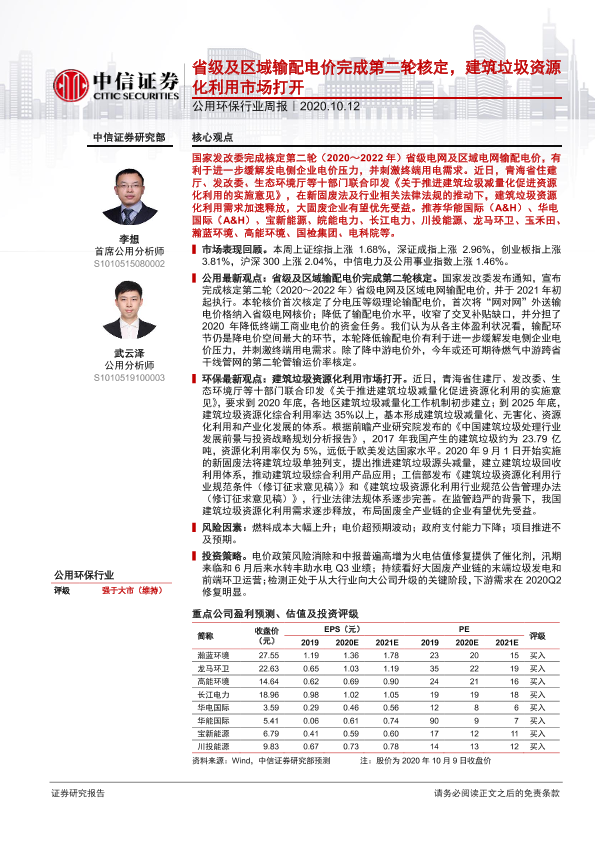 【中信证券】【20201012】公用环保行业周报:省级及区域输配电价完成第二轮核定,建筑垃圾资源化利用市场打开-14页