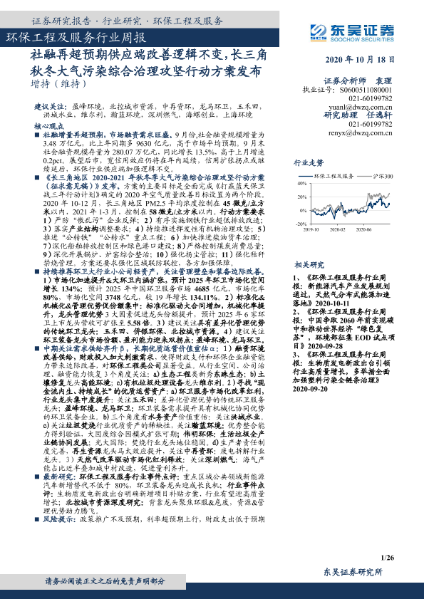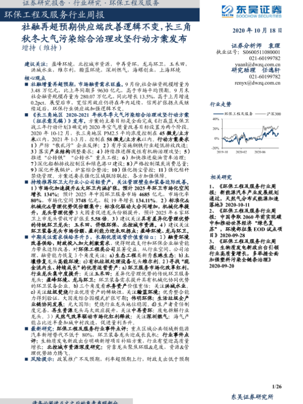 【东吴证券】【20201018】环保工程及服务行业周报:社融再超预期供应端改善逻辑不变-26页