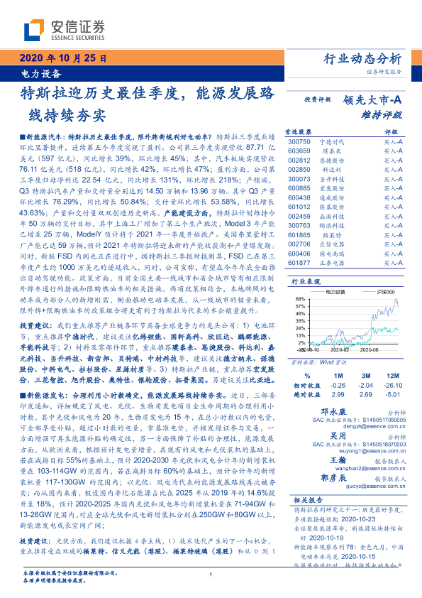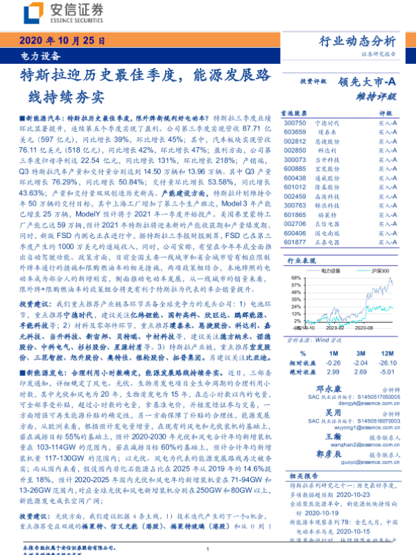 【安信证券】【20201025】电力设备行业动态分析:特斯拉迎历史最佳季度,能源发展路线持续夯实-28页