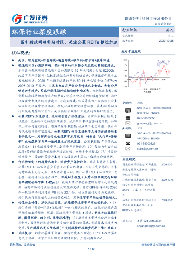 【广发证券】【20201025】环保行业深度跟踪:国补新政明确补贴时限,关注公募REITs推进加速-10页