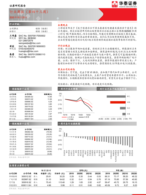 【华泰证券】【20201025】公用事业行业周报(第四十三周)-11页