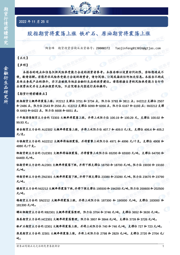 【国泰君安期货】【20221125】股指期货将震荡上涨,铁矿石、原油期货将震荡上涨-42页