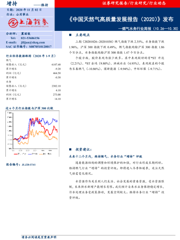【上海证券】【20201102】燃气水务行业周报:《中国天然气高质量发展报告(2020)》发布-8页
