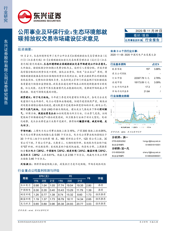 【东兴证券】【20201109】公用事业及环保行业:生态环境部就碳排放权交易市场建设征求意见-8页