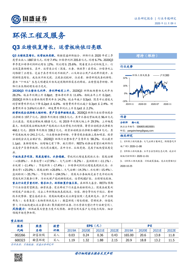 业绩增长 固废治理 水务运营 环保工程 运营板块