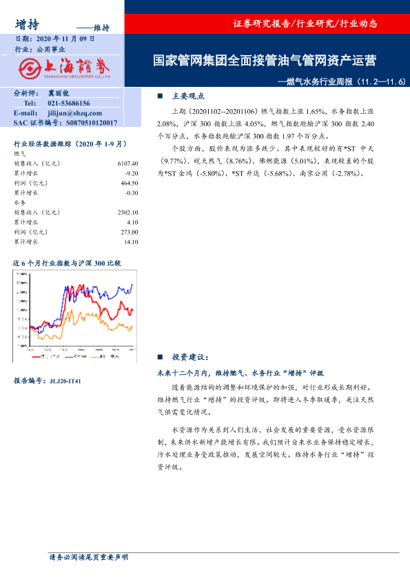 【上海证券】【20201109】燃气水务行业周报:国家管网集团全面接管油气管网资产运营-7页