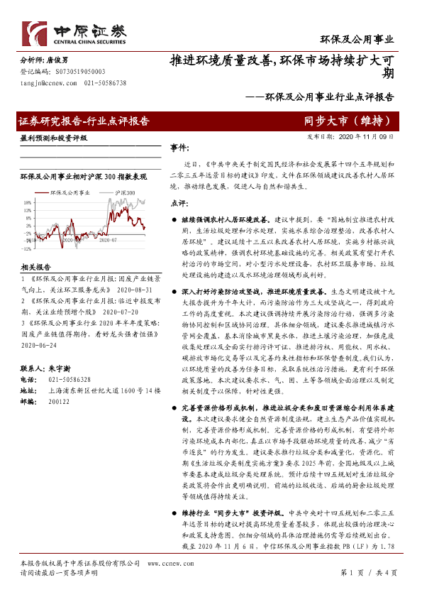 【中原证券】【20201109】推进环境质量改善,环保市场持续扩大可期-4页