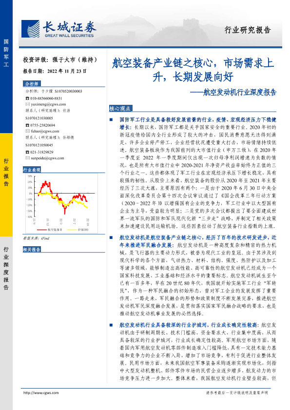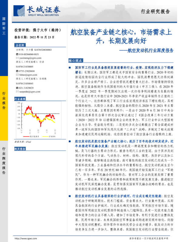 【长城证券】【20221123】航空发动机行业深度报告:航空装备产业链之核心,市场需求上升,长期发展向好-32页