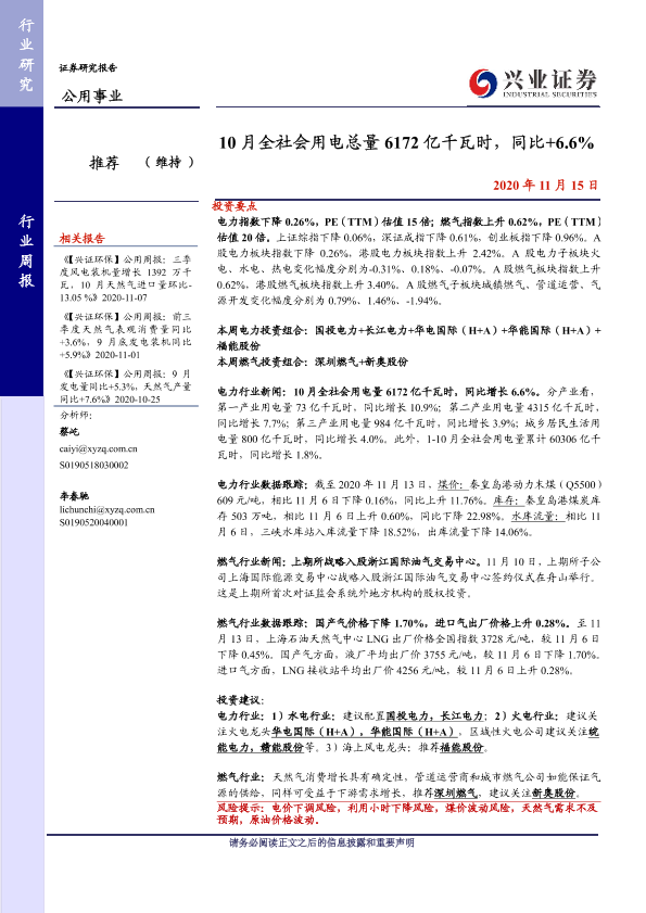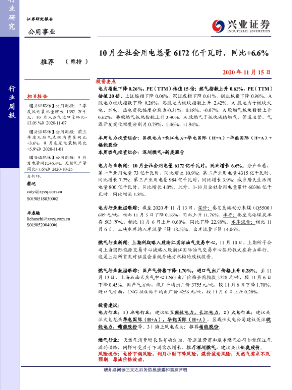 【兴业证券】【20201115】10月全社会用电总量6172亿千瓦时,同比+6.6%-12页