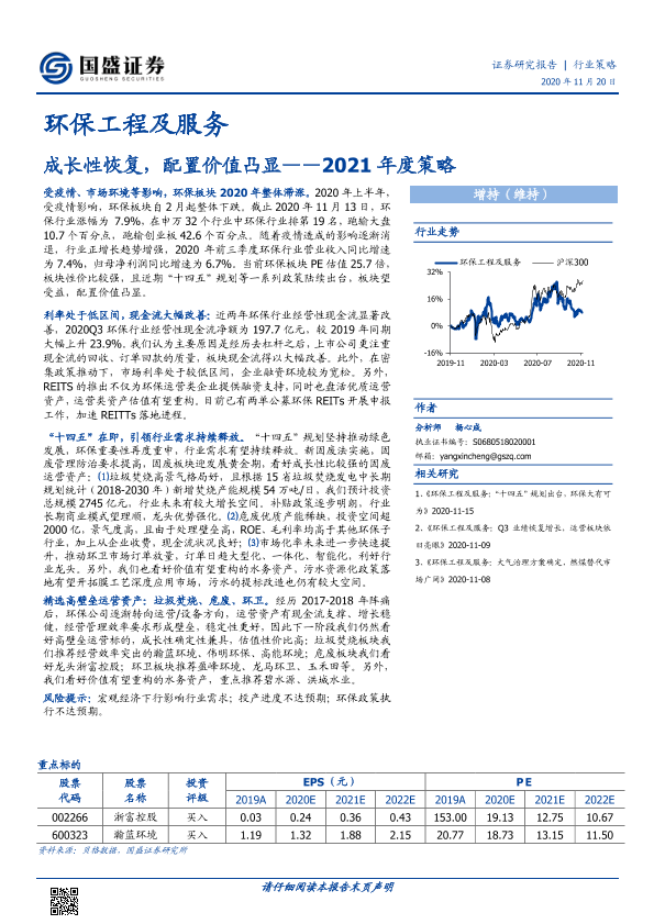 【国盛证券】【20201120】环保工程及服务2021年度策略:成长性恢复,配置价值凸显-22页