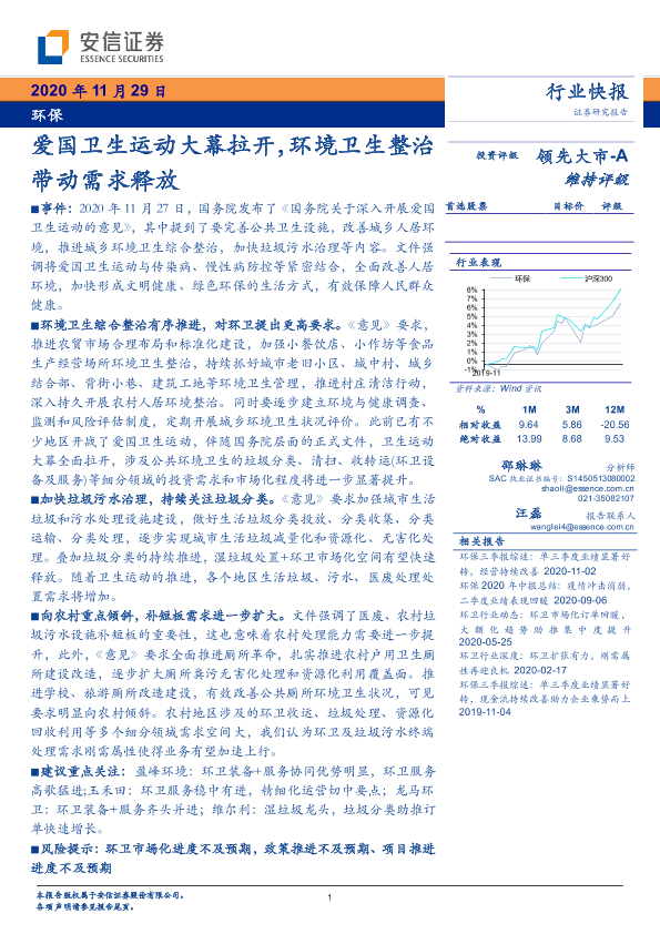 【安信证券】【20201129】环保行业快报:爱国卫生运动大幕拉开,环境卫生整治带动需求释放-3页
