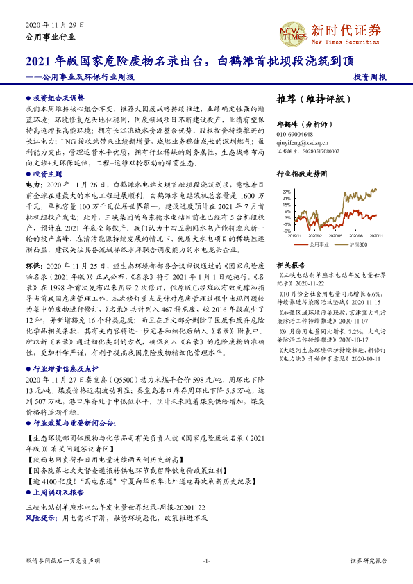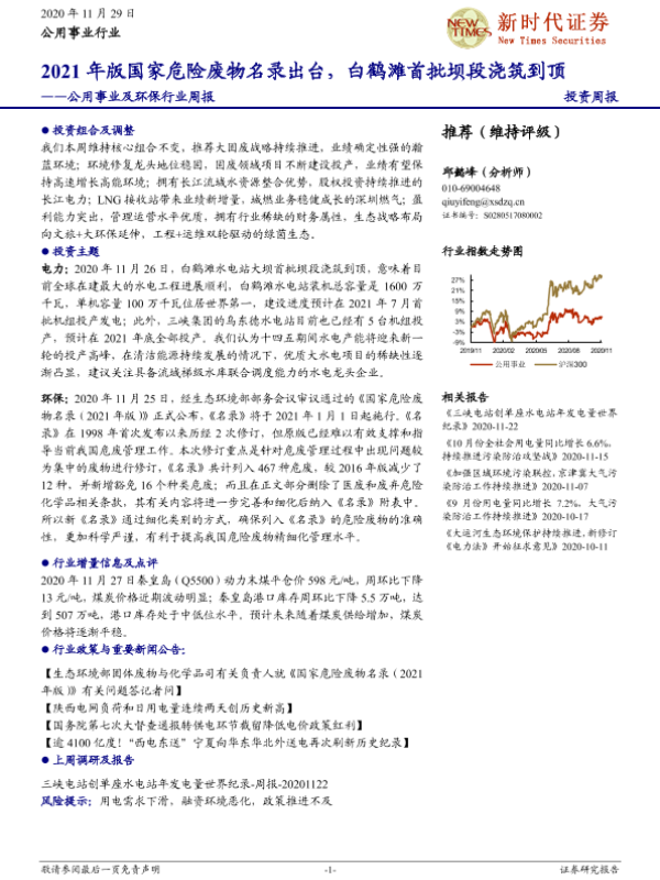 【新时代证券】【20201129】2021年版国家危险废物名录出台,白鹤滩首批坝段浇筑到顶-18页
