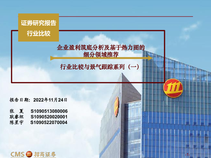 【海通证券】【20221124】行业比较与景气跟踪系列(一):企业盈利筑底分析及基于热力图的细分领域推荐-59页