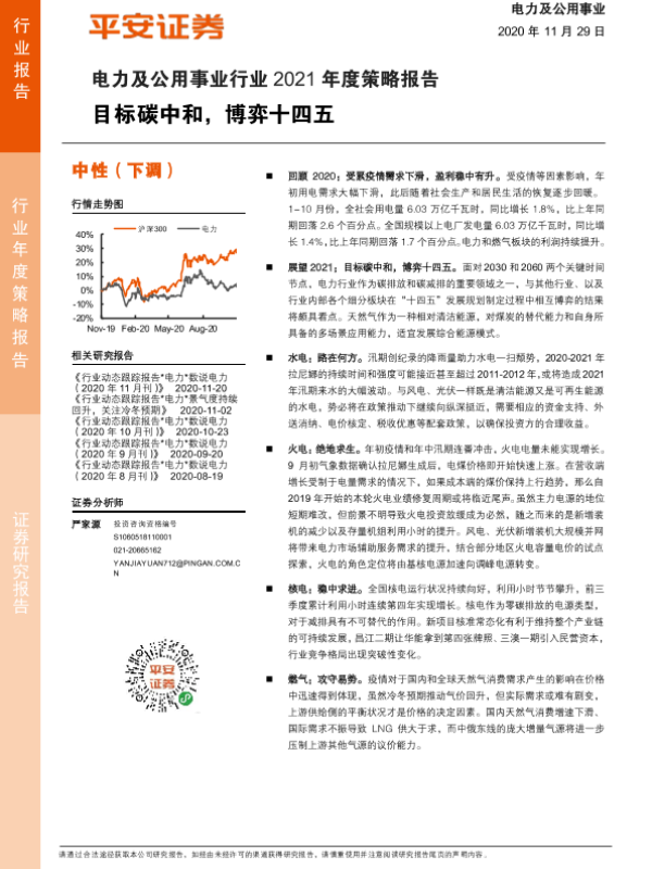 【平安证券】【20201129】电力及公用事业行业2021年度策略报告:目标碳中和,博弈十四五-36页