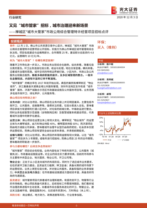 【光大证券】【20201203】禅城区'城市大管家'市政公用综合管理特许经营项目招标点评:又见'城市管家'招标,城市治理迎来新场景-3页