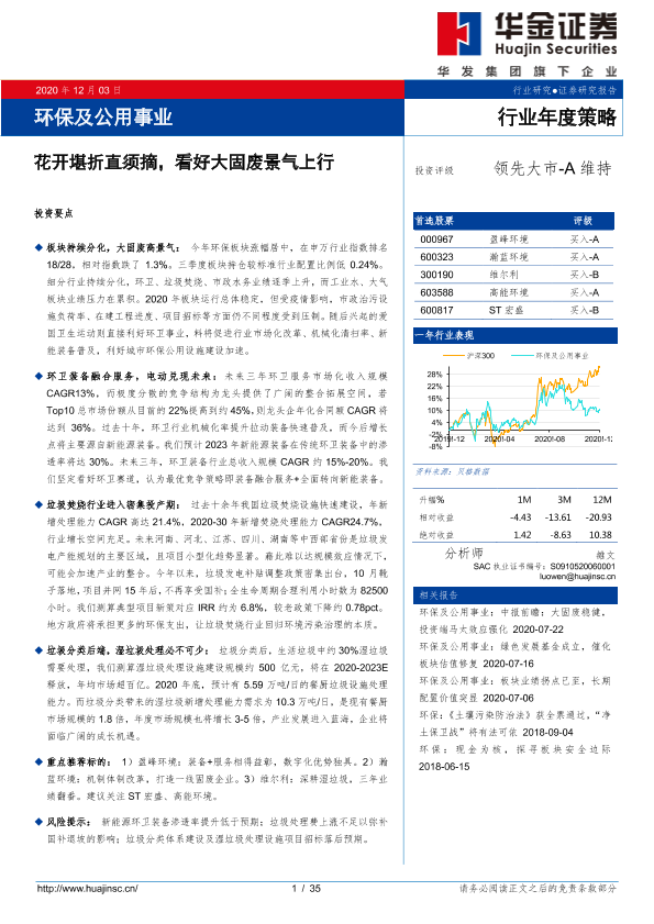 【华金证券】【20201203】环保及公用事业行业年度策略:看好大固废景气上行-35页