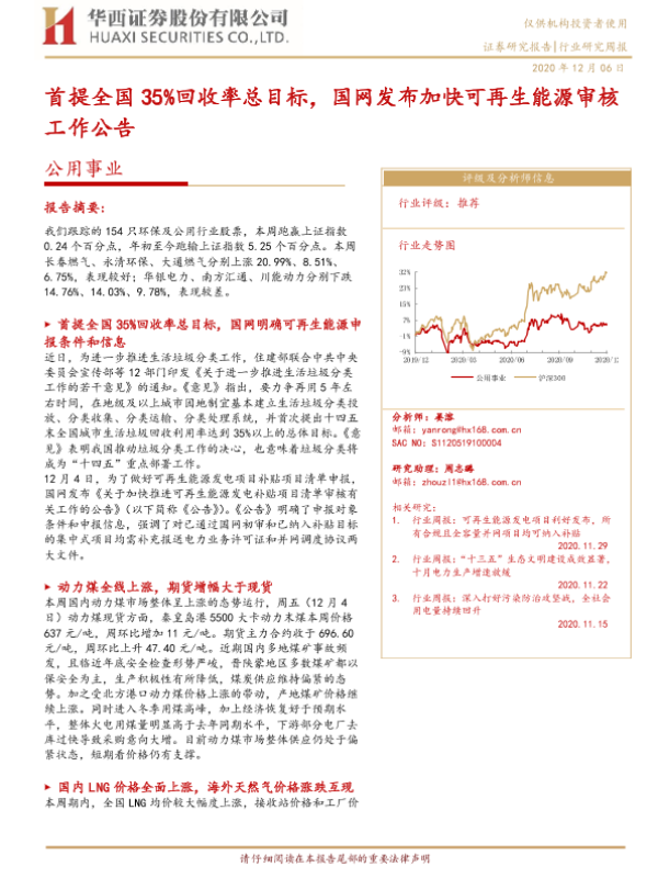 【华西证券】【20201206】首提全国35%回收率总目标,国网发布加快可再生能源审核工作公告-15页