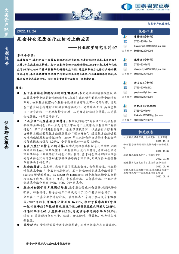 【国泰君安证券】【20221124】基金持仓还原在行业轮动上的应用-23页