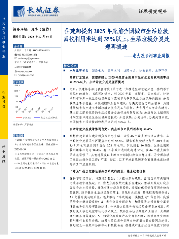 【长城证券】【20201207】住建部提出2025年底前全国城市生活垃圾回收利用率达到35以上生活垃圾分类处理再提速-12页