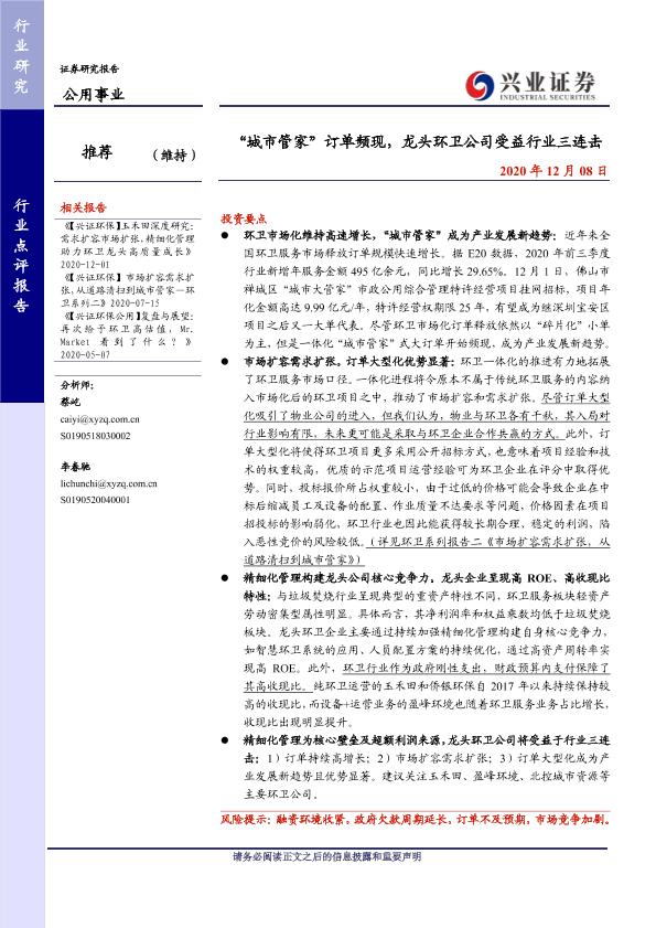 【兴业证券】【20201208】‘城市管家’订单频现,龙头环卫公司受益行业三连击-10页