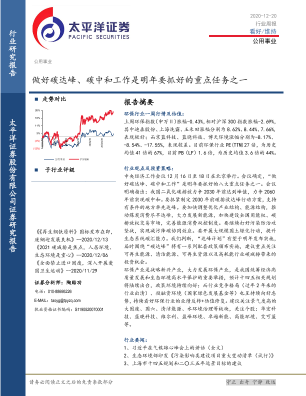 【太平洋证券】【20201220】做好碳达峰、碳中和工作是明年要抓好的重点任务之一-12页