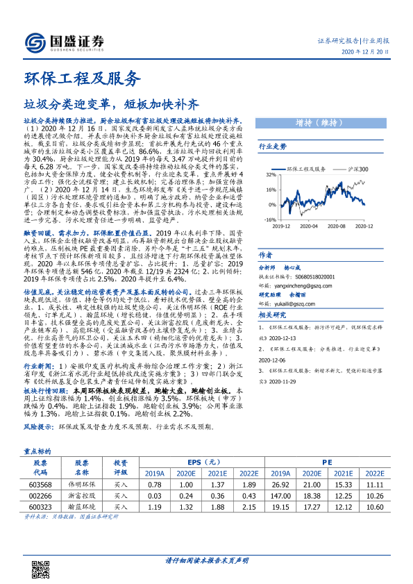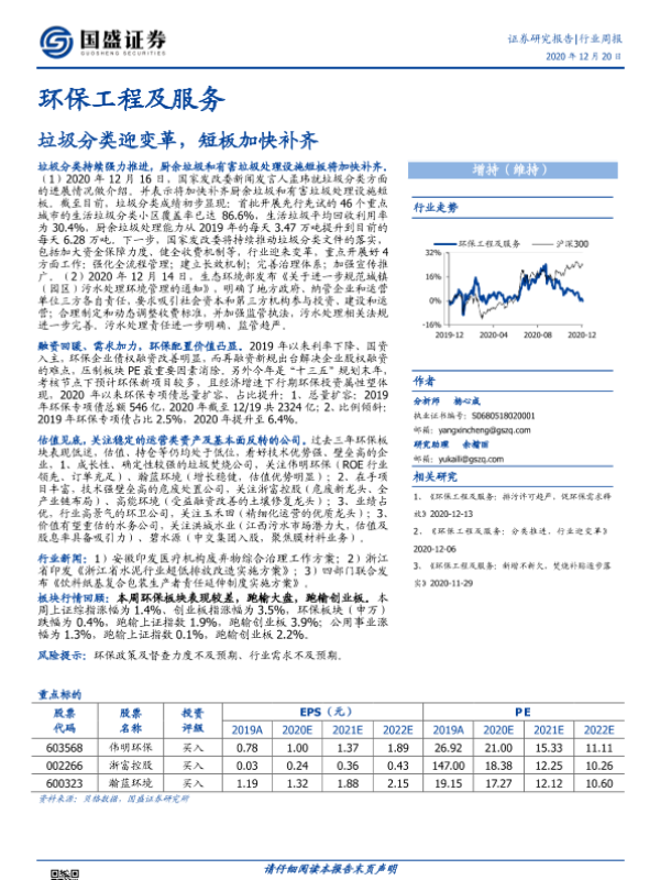 【国盛证券】【20201220】环保工程及服务行业周报:垃圾分类迎变革,短板加快补齐-13页
