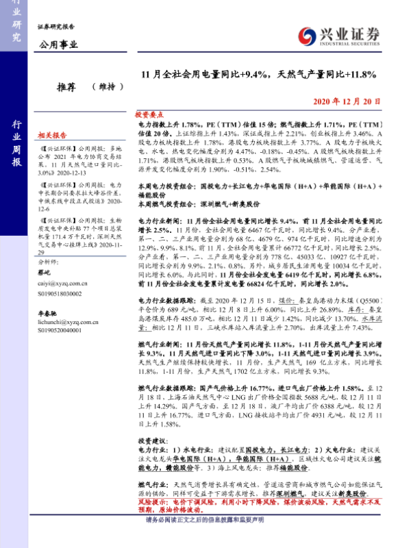兴业证券 电力热力燃气水生产 2020年 PDF 1.37 MB