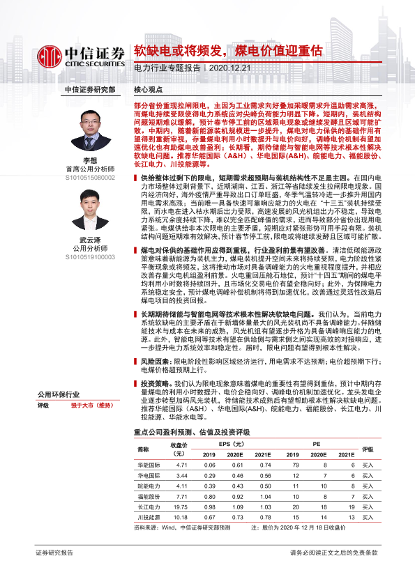 【中信证券】【20201221】电力行业专题报告:软缺电或将频发,煤电价值迎重估-17页