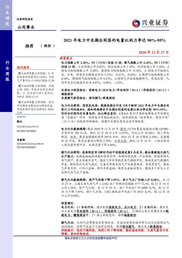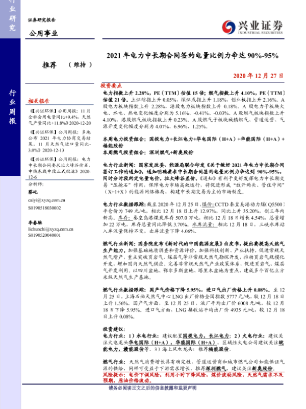 【兴业证券】【20201227】2021年电力中长期合同签约电量比例力争达90%-95%-12页