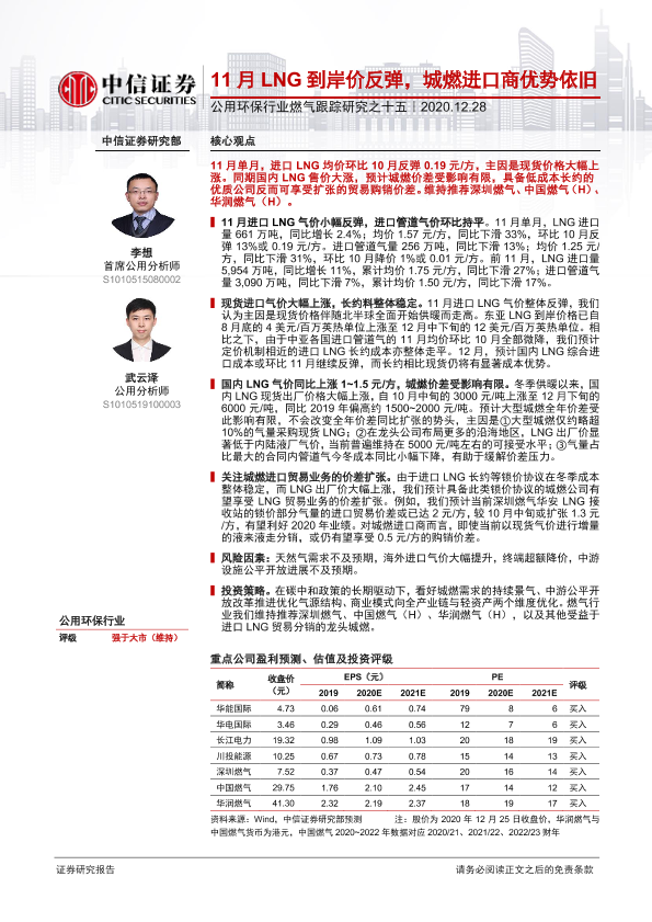 【中信证券】【20201228】11月LNG到岸价反弹,城燃进口商优势依旧-4页