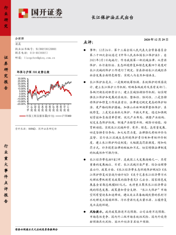 市场分析 政策出台 环保工程 证券研究报告 长江保护法