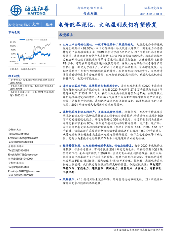 【海通证券】【20210104】公用事业行业周报:电价改革深化,火电盈利或仍有望修复-2页