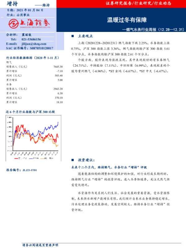 【上海证券】【20210104】燃气水务行业周报:温暖过冬有保障-8页