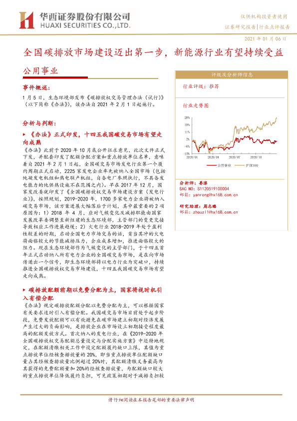 【华西证券】【20210106】全国碳排放市场建设迈出第一步,新能源行业有望持续受益-4页