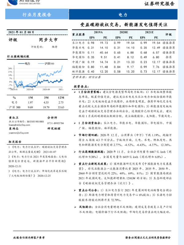 【财信证券】【20210108】电力行业月度报告:受益碳排放权交易,新能源发电值得关注-16页