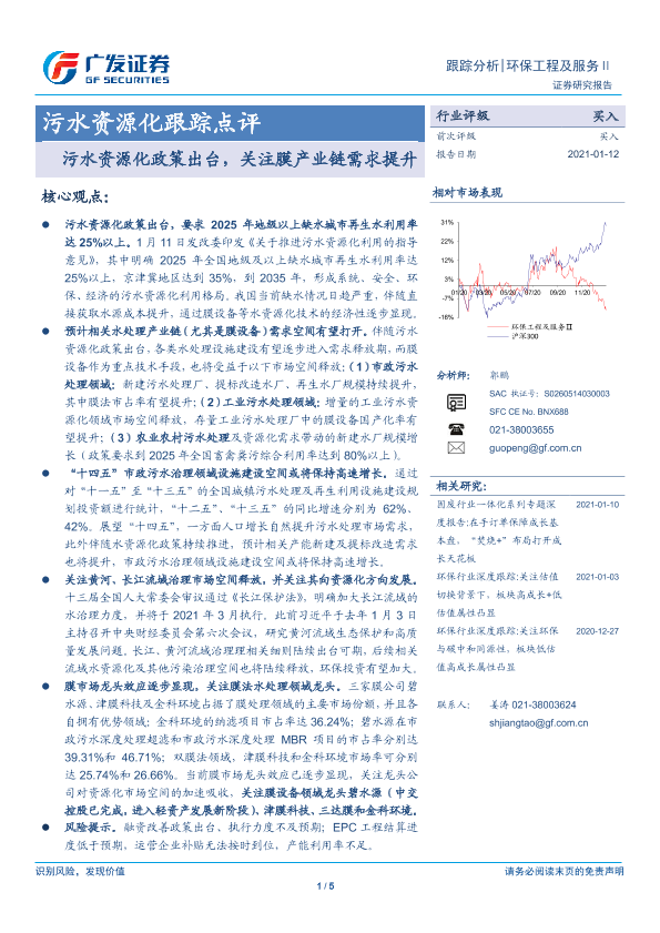 【广发证券】【20210112】污水资源化跟踪点评:污水资源化政策出台,关注膜产业链需求提升-5页