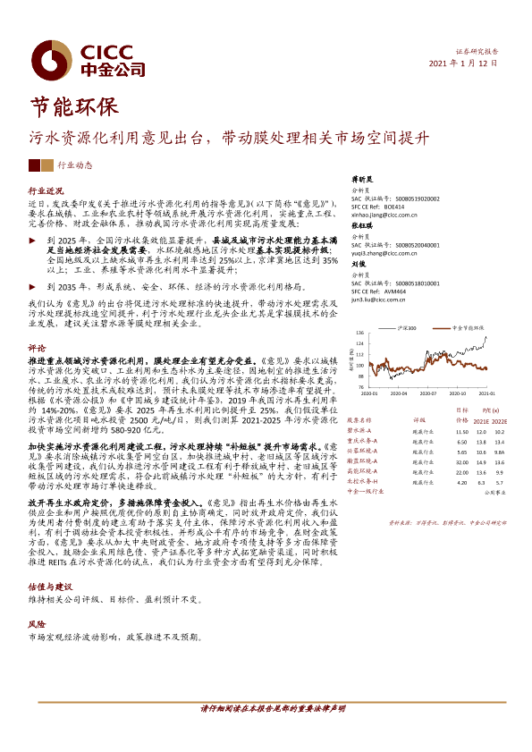 【中金公司】【20210112】污水资源化利用意见出台,带动膜处理相关市场空间提升-5页