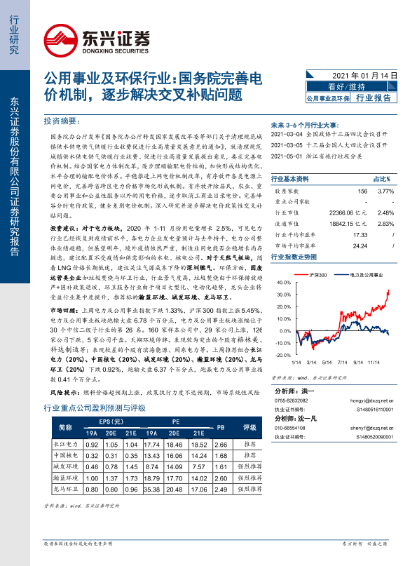 【东兴证券】【20210114】公用事业及环保行业:国务院完善电价机制,逐步解决交叉补贴问题-8页