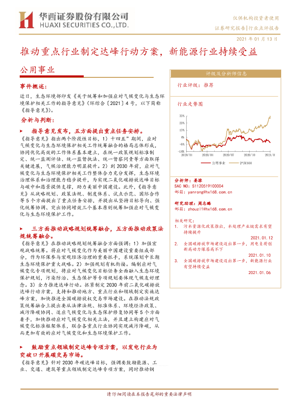 【华西证券】【20210113】推动重点行业制定达峰行动方案,新能源行业持续受益-4页